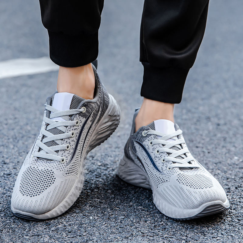 These athletic shoes are designed for users who prioritize lightness and comfort. The overall lightweight design allows for greater flexibility and freedom of movement with every step. The upper is made of a flyknit fabric, which is soft and conforms to the foot, providing excellent breathability while also offering support and durability. The lining uses mesh material, effectively enhancing breathability and keeping feet dry and comfortable during exercise or prolonged wear. Both the midsole and outsole are made of high-quality PVC material, ensuring the shoes are wear-resistant and non-slip, while also providing good cushioning and support. They guarantee stability and comfort whether for everyday wear or athletic activities.